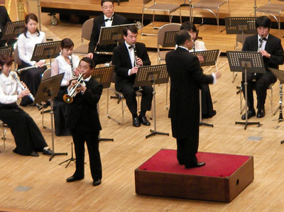 創立45周年記念演奏会おめでとうございます。 私が新交響吹奏楽団の皆さんと御付合いさせて頂いて、二年程になるでしょうか。管弦楽の為に書かれた作品を、原調のままで、原曲に優るとも劣らない音楽表現を創り上げたい、このこだわりに私は共感と興味を感じております。私の役目は、プロの豊富な経験から身に付けた合奏の基本を、団員の皆さんに伝えることです。上手、下手ではなく、どんなポイントに注意して合奏に臨む事が良い合奏につながるかを理解、体感して下さる団員の方の数が増えれば増える程、確実に響きが良くなってきます。 指揮者の松田浩則氏が苦労して編曲、こだわりの実現に向かって努力しておられる姿に敬服しておりますし、団員の皆さんの誠実な音楽への取り組みにも好感を持っております。残された課題は、特に中音域の楽器群と打楽器セクションの充実です。この楽団のこだわりに賛同される奏者が是非数多く入団される様に願っております。 吹奏楽の持つ音楽表現の可能性は無限にあります。管弦楽よりは、ずっと多様な楽器を駆使出来るからです。こだわりの実現の為には、更なる工夫とアンサンブルの基本に対するしっかりした認識の共有が不可欠です。これらが現実の物となった時、新交響吹奏楽団のサウンドは、一層輝かしい響きとなって、聴いて下さる皆様方の心に達することでしょう。更なる御発展を祈ります。 |